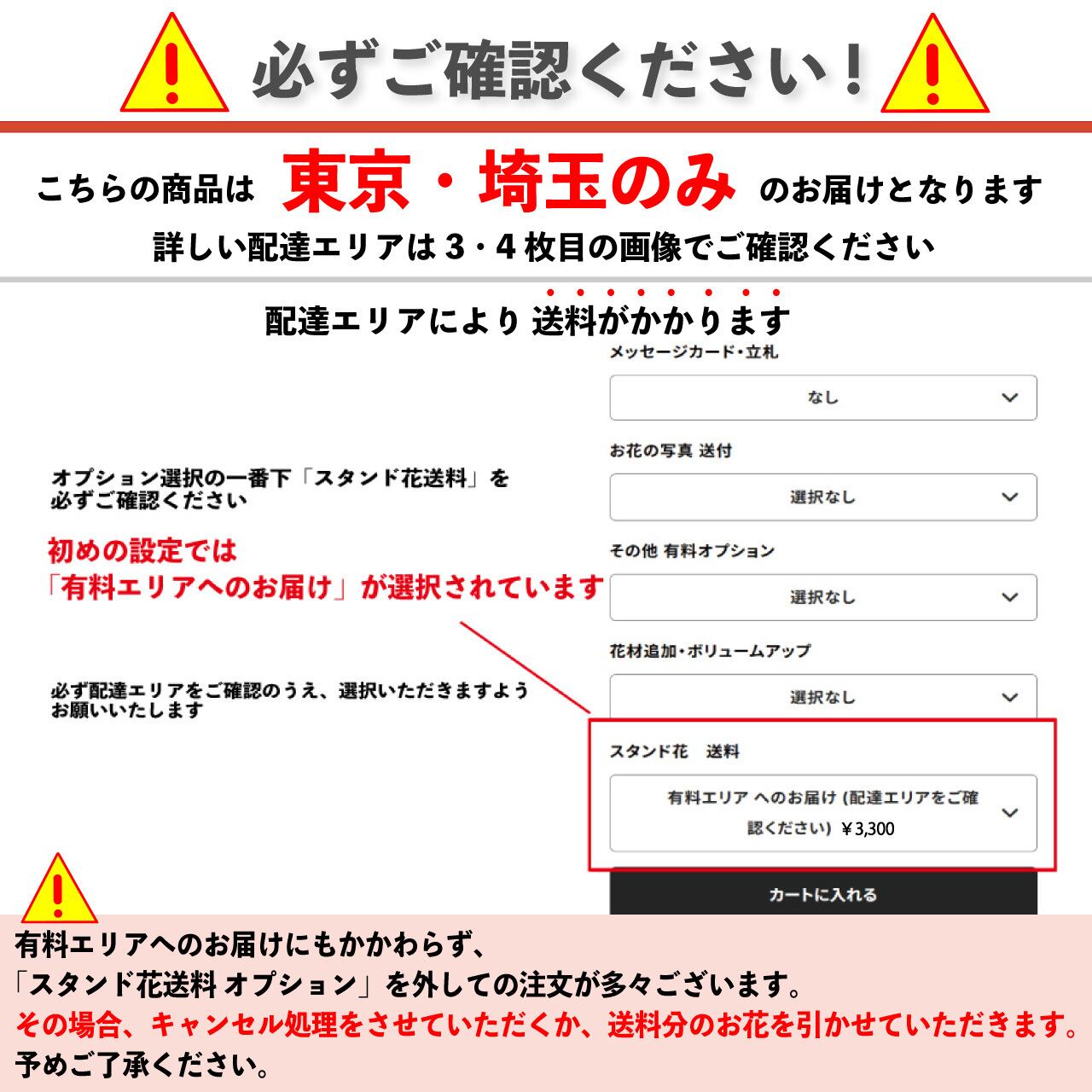 「有料エリア」にかかわらず「スタンド花送料」が選択されていない場合はキャンセル扱いとなりますので、ご注意ください。